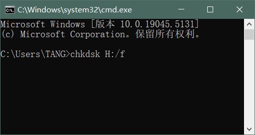 然后執行:chkdsk H:/f